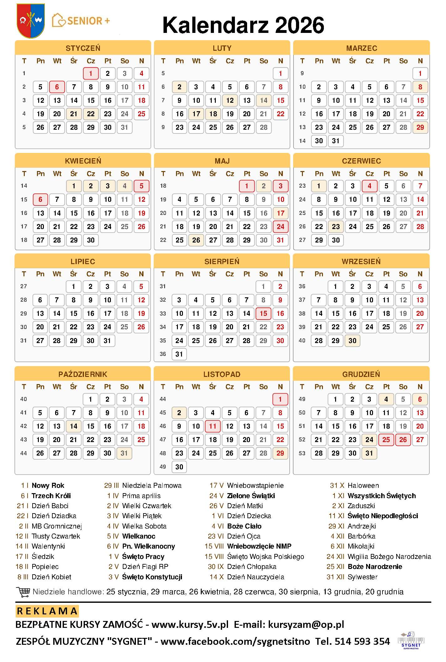 ► Kalendarz 2026Połączenie na koszt rozmówcy – kody do każdej sieci GSM